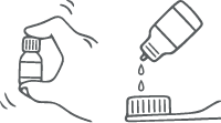 瓶をよく振って、歯ブラシに液を2〜3滴たらしてください。